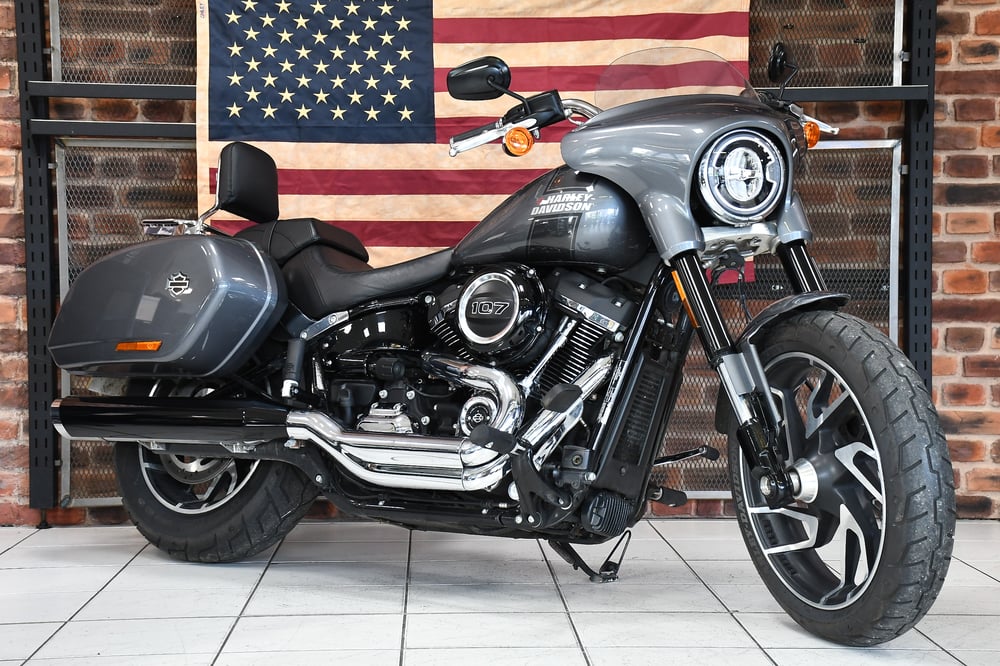 The 2021 Harley-Davidson Sport Glide equipped with a sissy bar embodies a perfect balance of comfort, style, and touring capability. As a member of the Softail family, the Sport Glide already offers a versatile blend of agility and long-distance readiness, and the addition of a sissy bar elevates its practicality even further. The bike’s Milwaukee-Eight 107 engine delivers smooth, confident power, making highway travel effortless while still maintaining the responsiveness needed for urban riding. Its detachable fairing and saddlebags define its adaptable personality, allowing riders to switch between stripped-down cruiser and light-touring machine with ease.