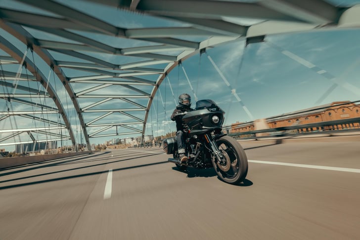 The Milwaukee-Eight 117 High Output motor pulls harder through the mid and top end, with redline pushed to 5,900 rpm so you can hold the throttle wide open and let the bike do what we built it for.